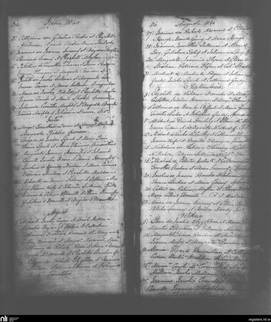 Mahoonagh; County of Limerick; Diocese of Limerick. Baptisms, June 1840 to Oct. 1840