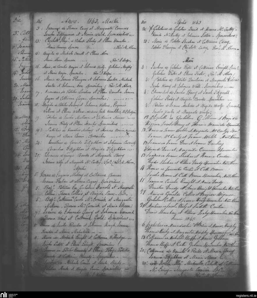 Mahoonagh; County of Limerick; Diocese of Limerick. Baptisms, Mar. 1843 to June 1843