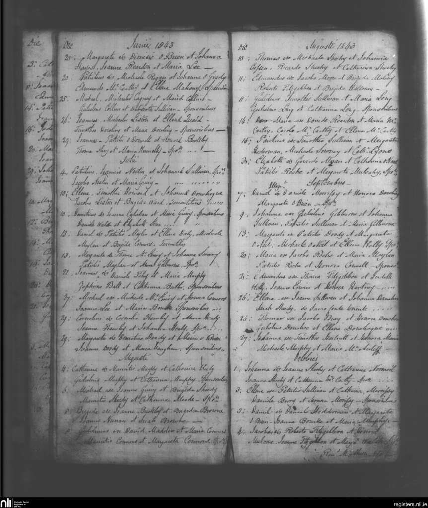 Mahoonagh; County of Limerick; Diocese of Limerick. Baptisms, June 1843 to Oct. 1843
