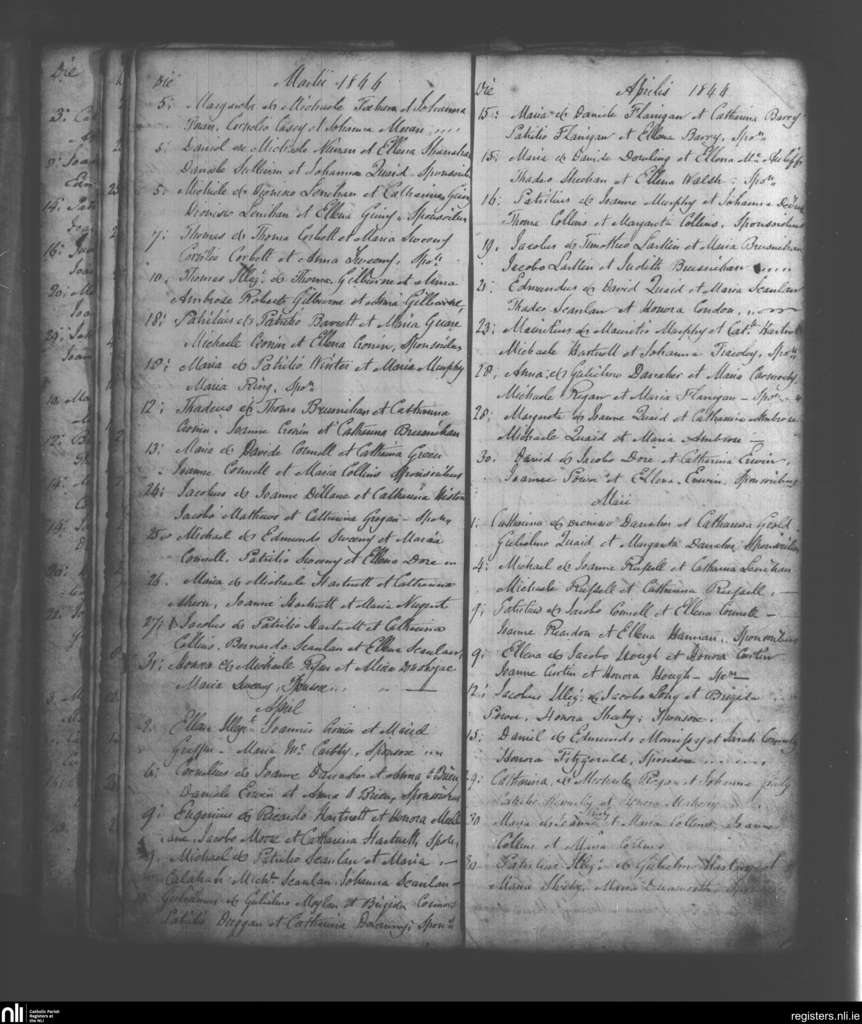 Mahoonagh; County of Limerick; Diocese of Limerick. Baptisms, Mar. 1844 to May 1844