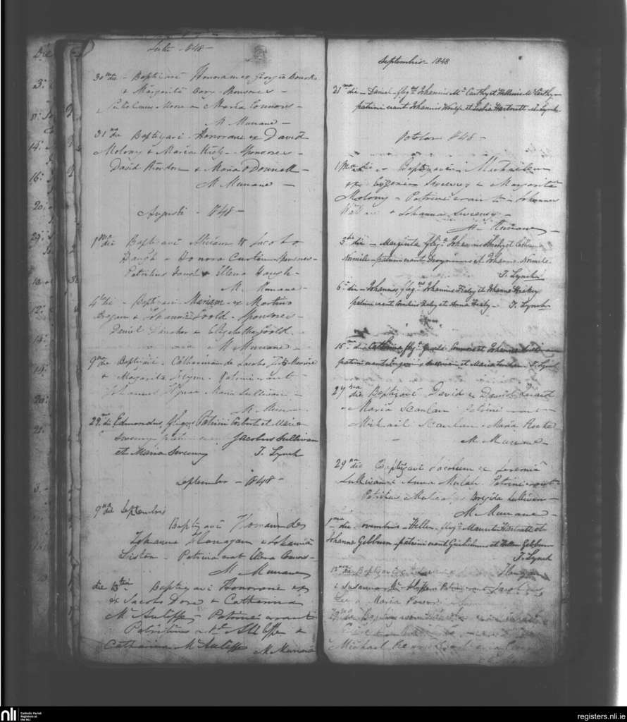 Mahoonagh; County of Limerick; Diocese of Limerick. Baptisms, July 1848 to Nov. 1848
