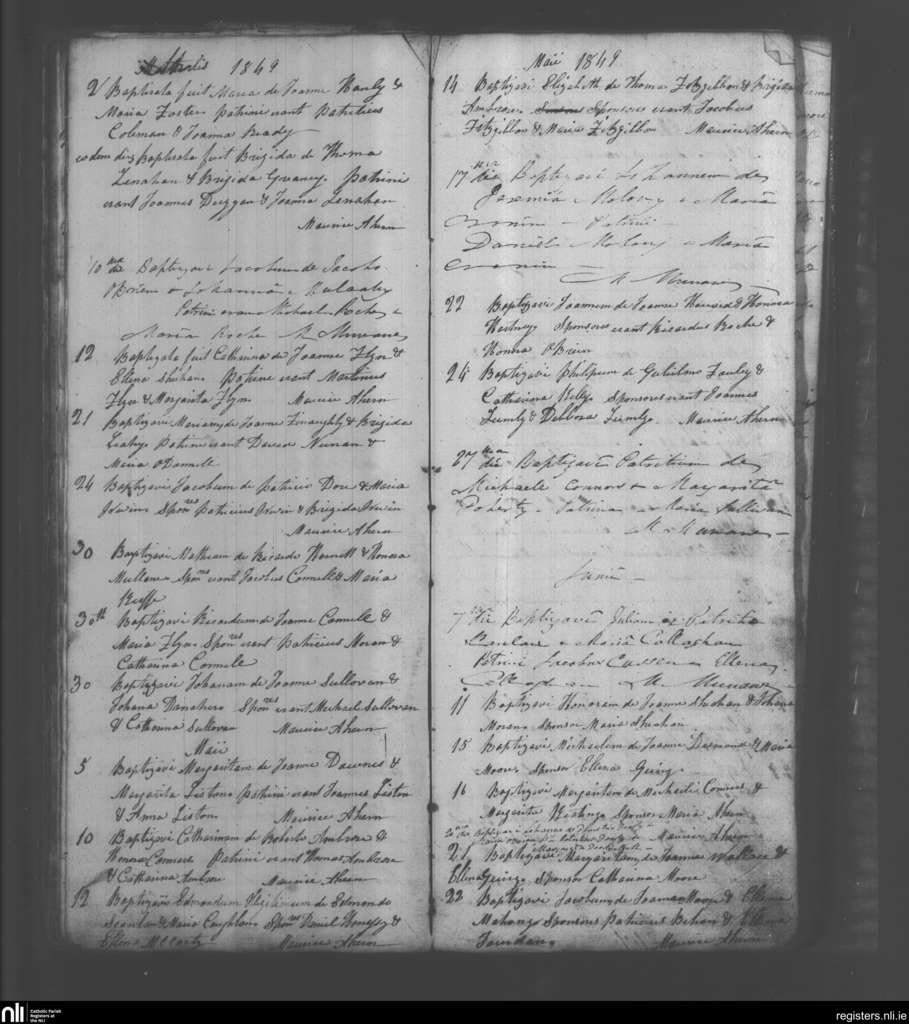 Mahoonagh; County of Limerick; Diocese of Limerick. Baptisms, Apr. 1849 to June 1849