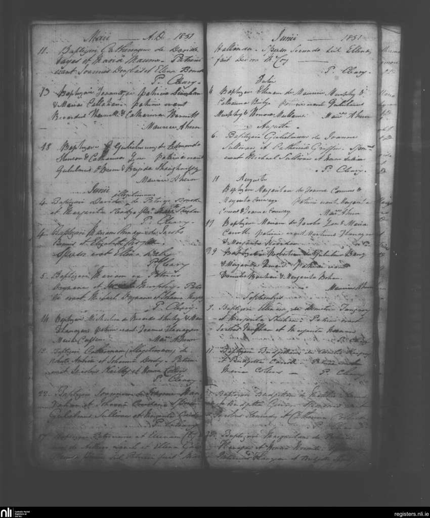 Mahoonagh; County of Limerick; Diocese of Limerick. Baptisms, May 1851 to Sep. 1851