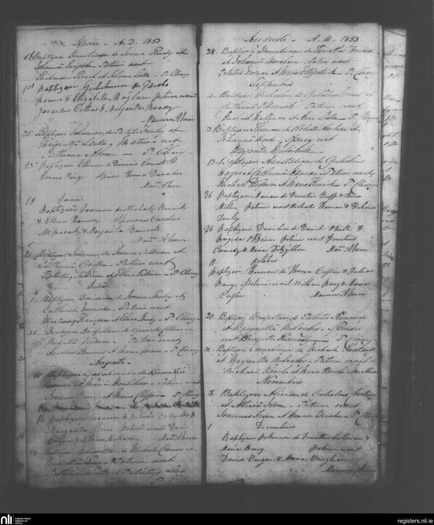 Mahoonagh; County of Limerick; Diocese of Limerick. Baptisms, May 1853 to Dec. 1853