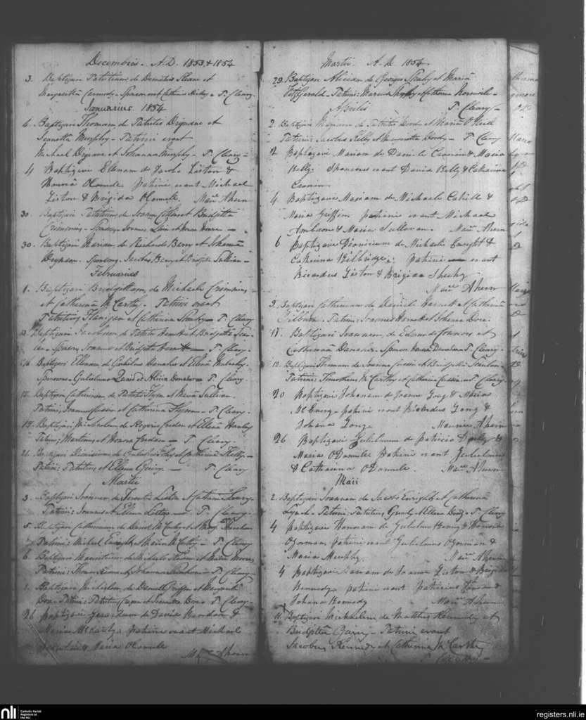 Mahoonagh; County of Limerick; Diocese of Limerick. Baptisms, Dec. 1853 to May 1854