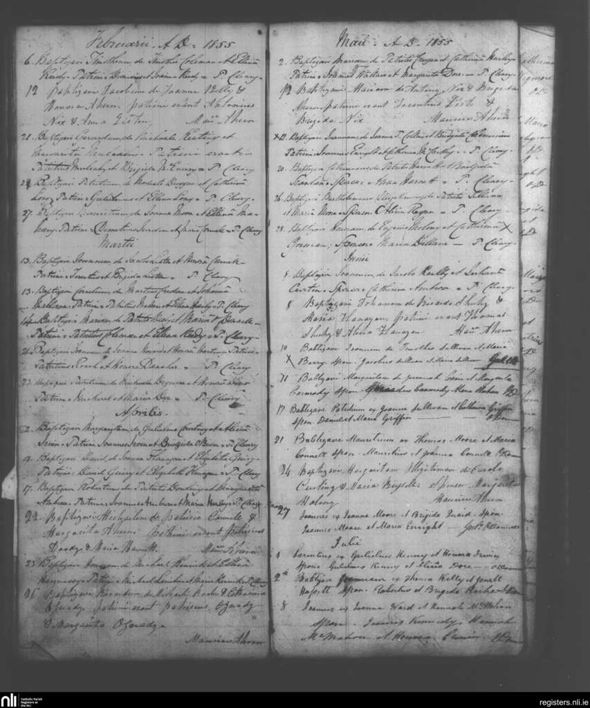 Mahoonagh; County of Limerick; Diocese of Limerick. Baptisms, Feb. 1855 to July 1855