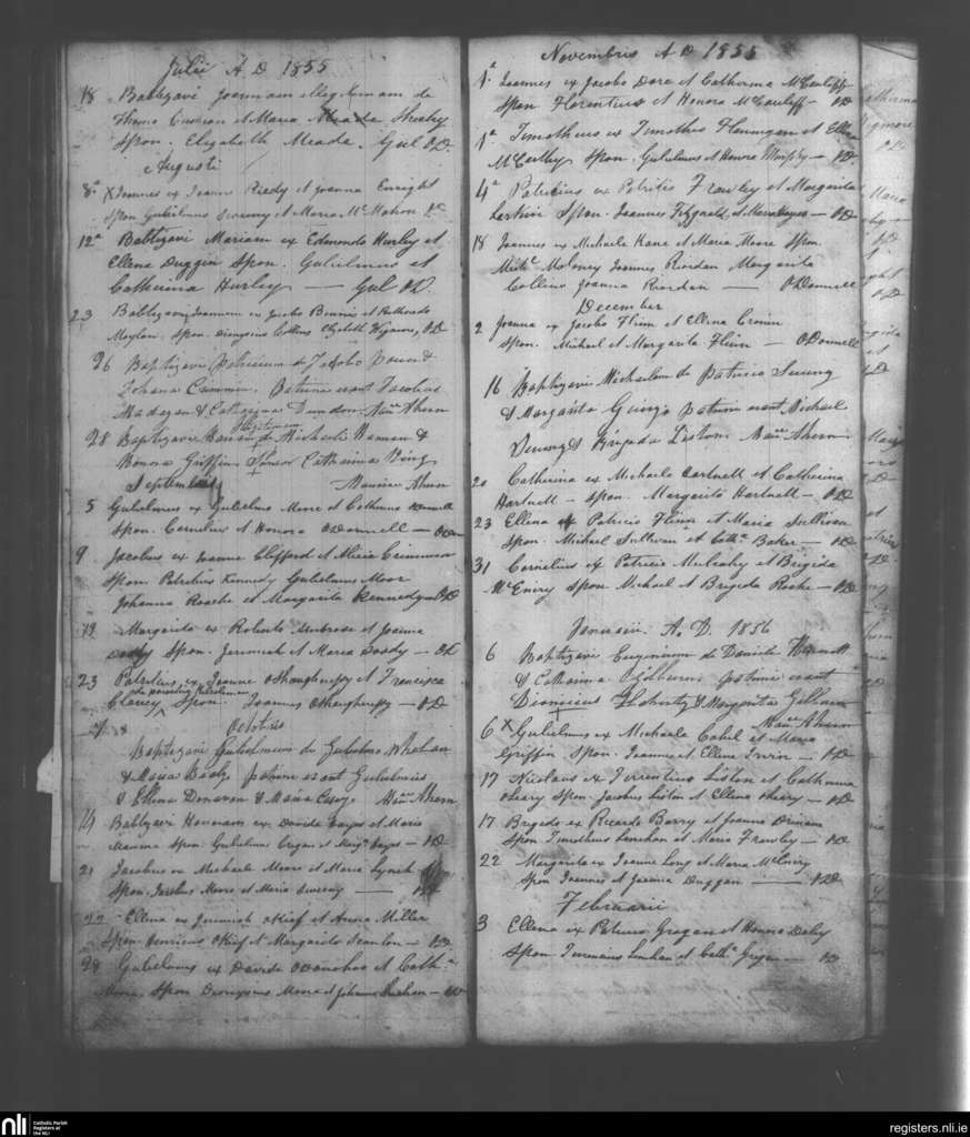 Mahoonagh; County of Limerick; Diocese of Limerick. Baptisms, July 1855 to Feb. 1856