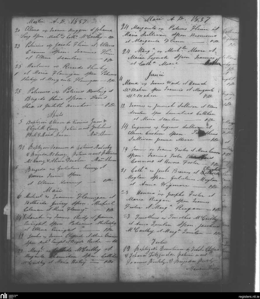 Mahoonagh; County of Limerick; Diocese of Limerick. Baptisms, Mar. 1857 to July 1857