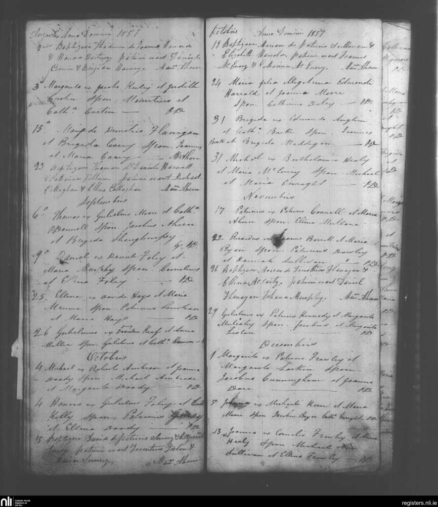 Mahoonagh; County of Limerick; Diocese of Limerick. Baptisms, Aug. 1857 to Dec. 1857