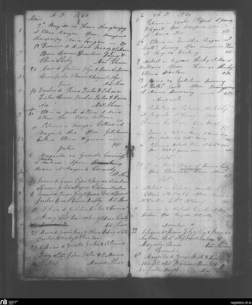 Mahoonagh; County of Limerick; Diocese of Limerick. Baptisms, May 1860 to Dec. 1860