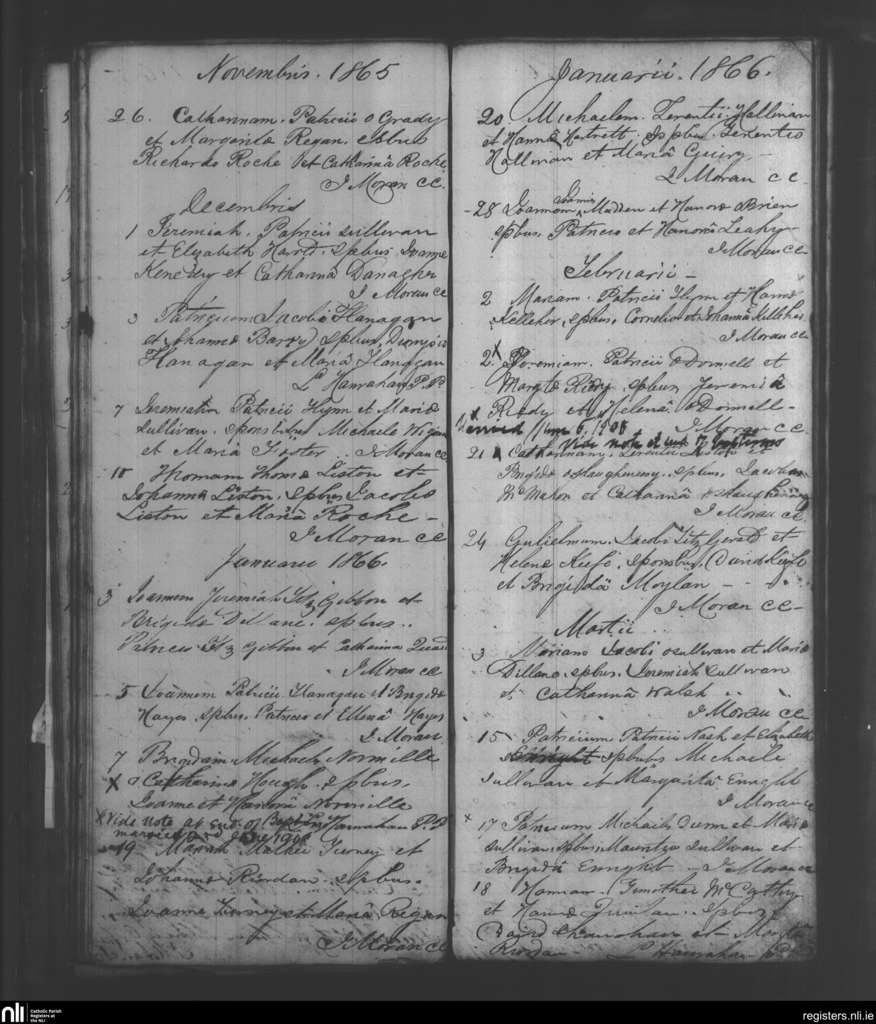 Mahoonagh; County of Limerick; Diocese of Limerick. Baptisms, Nov. 1865 to Mar. 1866