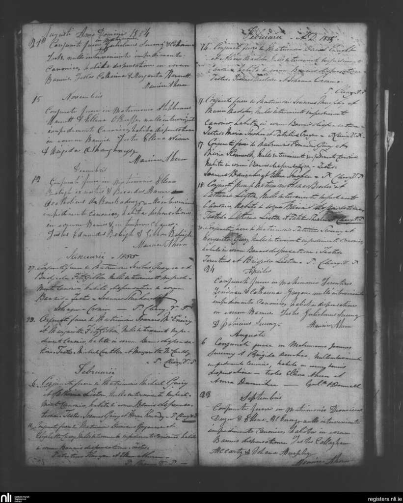 Mahoonagh; County of Limerick; Diocese of Limerick. Marriages, Aug. 1854 to Sep. 1855