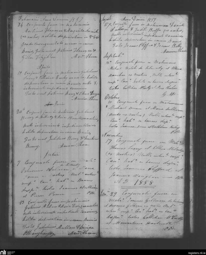 Mahoonagh; County of Limerick; Diocese of Limerick. Marriages, Feb. 1857 to Jan. 1858