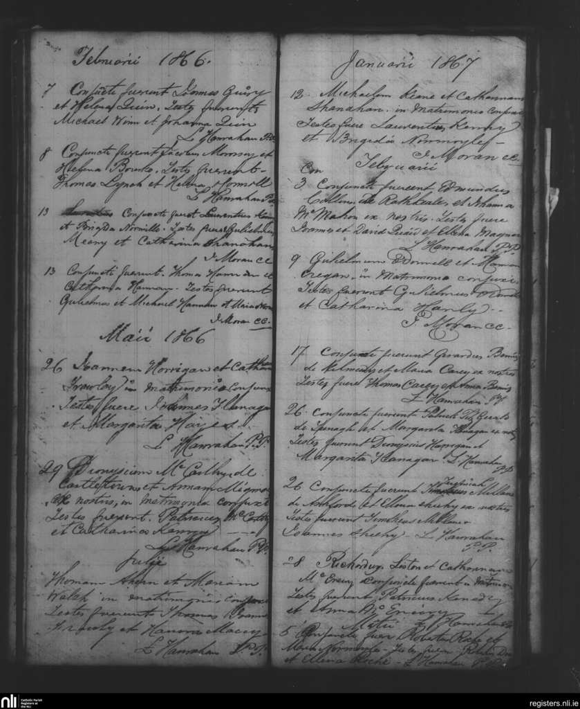 Mahoonagh; County of Limerick; Diocese of Limerick. Marriages, Feb. 1866 to Feb. 1867