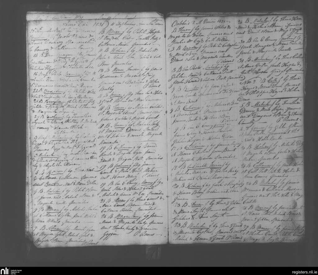 Kildimo; County of Limerick; Diocese of Limerick. Baptisms, Sep. 1831 to Nov. 1831