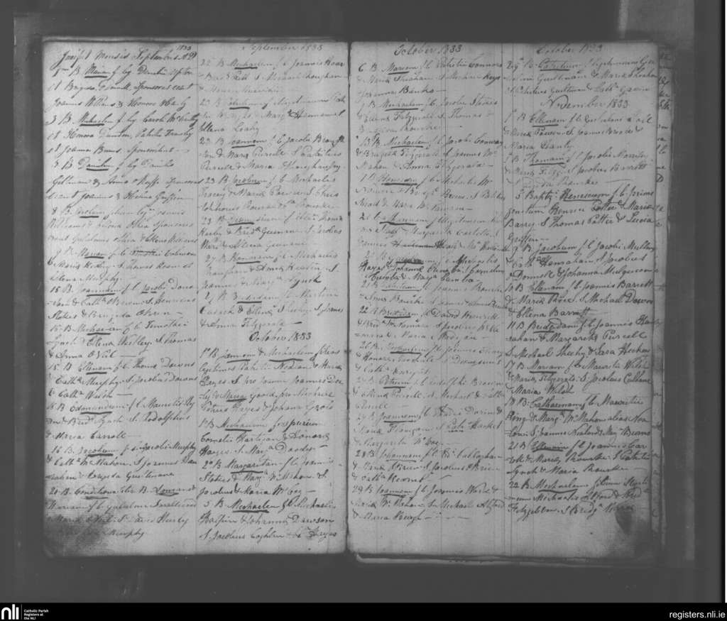 Kildimo; County of Limerick; Diocese of Limerick. Baptisms, Sep. 1833 to Oct. 1833
