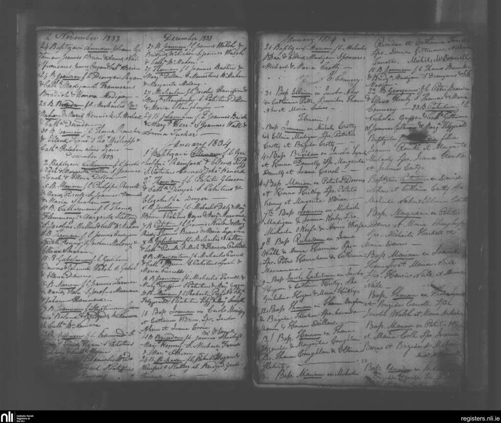 Kildimo; County of Limerick; Diocese of Limerick. Baptisms, Nov. 1833 to Jan. 1834