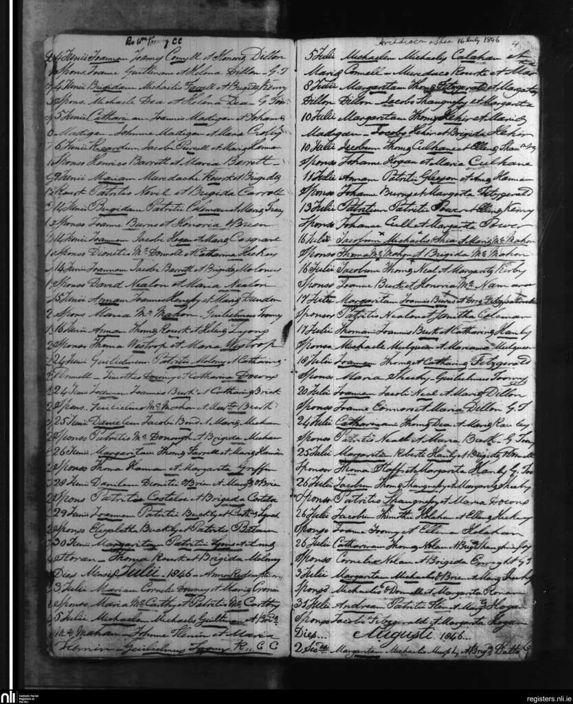 Kildimo; County of Limerick; Diocese of Limerick. Baptisms, June 1846 to Aug. 1846