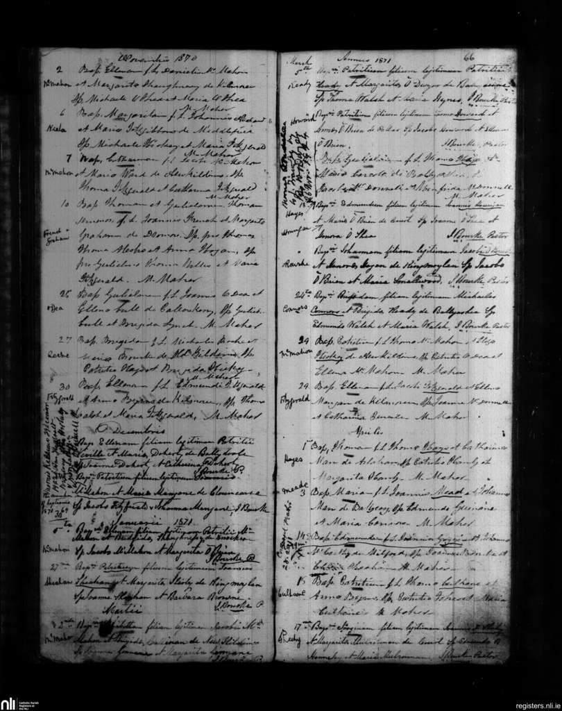 Kildimo; County of Limerick; Diocese of Limerick. Baptisms, Nov. 1870 to Apr. 1871
