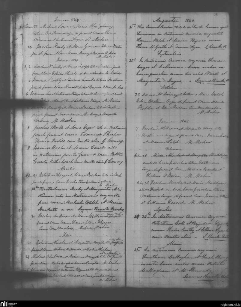 Kildimo; County of Limerick; Diocese of Limerick. Marriages, Jan. 1864 to May 1865