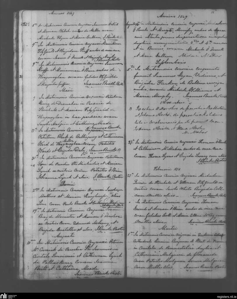 Kildimo; County of Limerick; Diocese of Limerick. Marriages, May 1869 to Mar. 1870