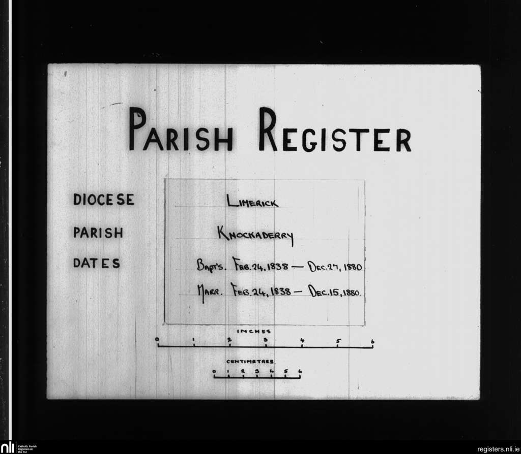 Knockaderry; County of Limerick; Diocese of Limerick. Baptisms, Marriages