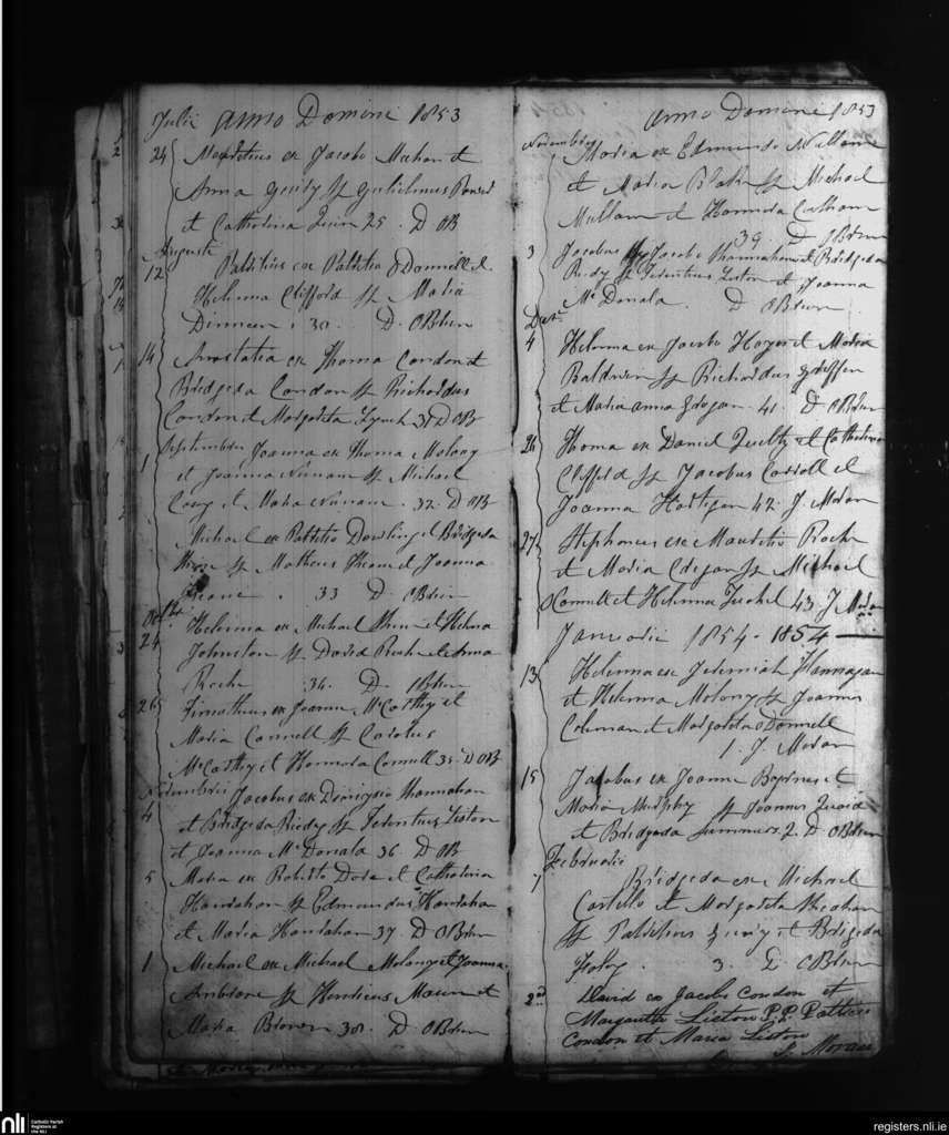 Knockaderry; County of Limerick; Diocese of Limerick. Baptisms, July 1853 to Feb. 1854