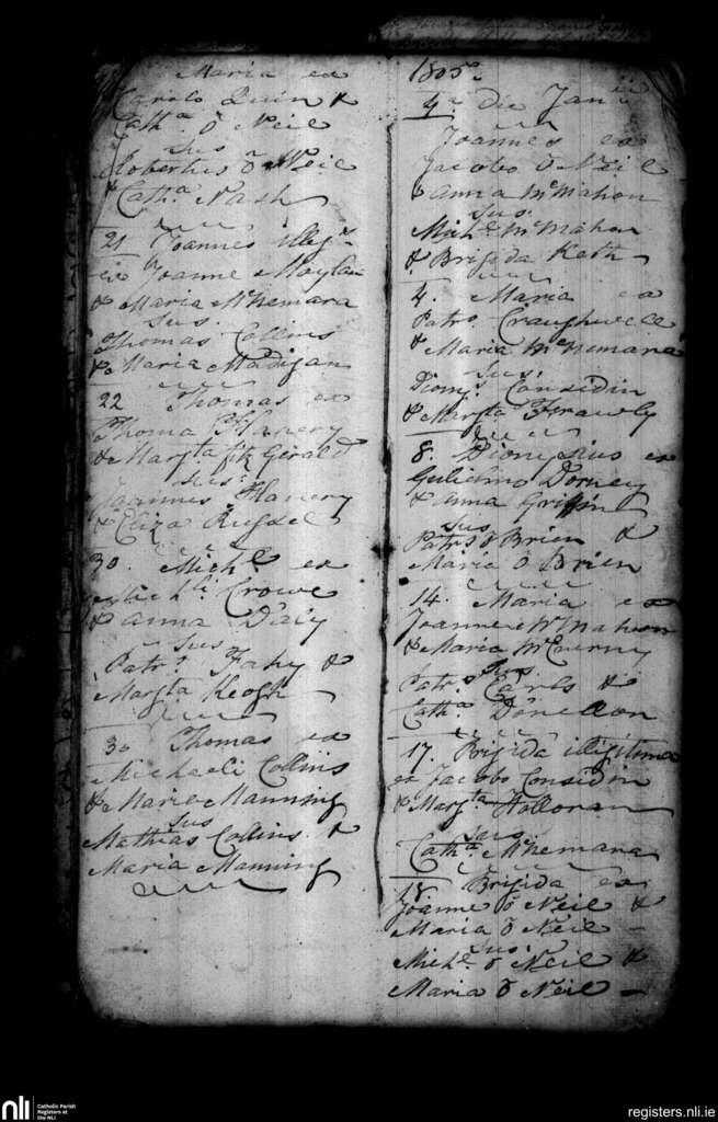 Cratloe; County of Clare; Diocese of Limerick. Baptisms, Dec. 1804 to Jan. 1805