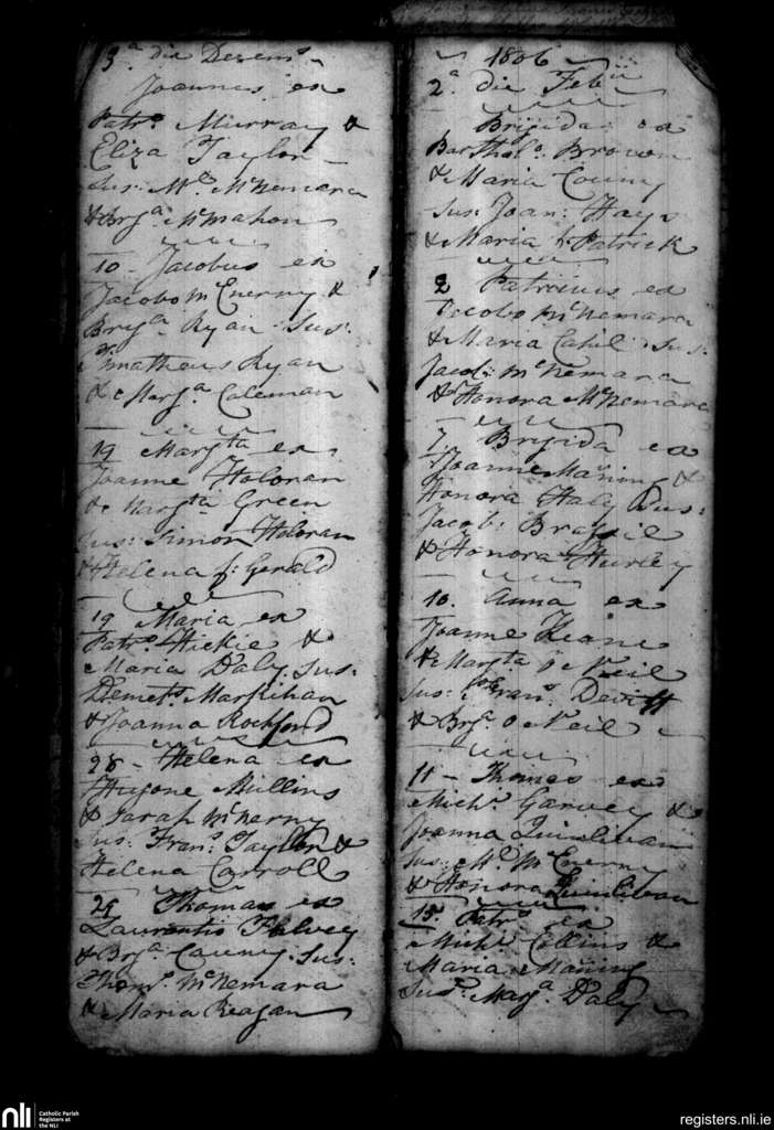 Cratloe; County of Clare; Diocese of Limerick. Baptisms, Dec. 1805 to Feb. 1806