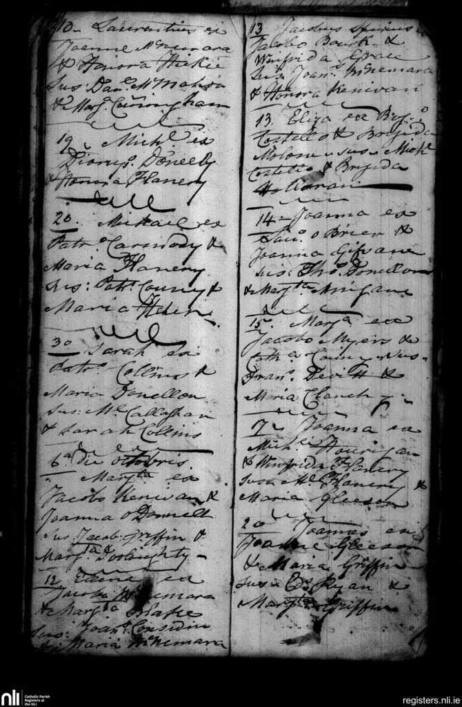 Cratloe; County of Clare; Diocese of Limerick. Baptisms, Sep. 1806 to Oct. 1806