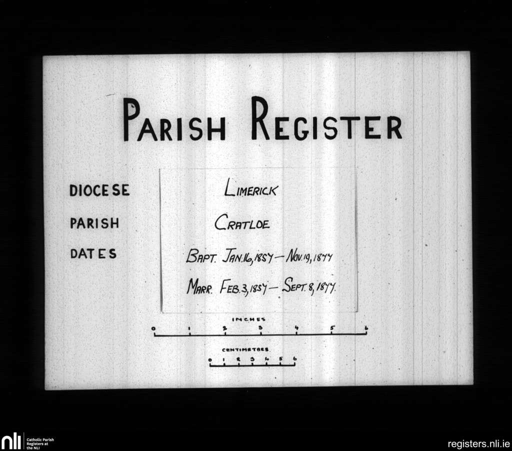 Cratloe; County of Clare; Diocese of Limerick. Baptisms, Marriages