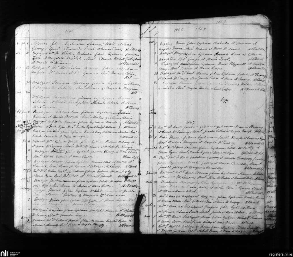 Cratloe; County of Clare; Diocese of Limerick. Baptisms, May 1866 to May 1867