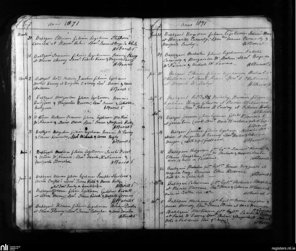 Cratloe; County of Clare; Diocese of Limerick. Baptisms, Mar. 1871 to Nov. 1871