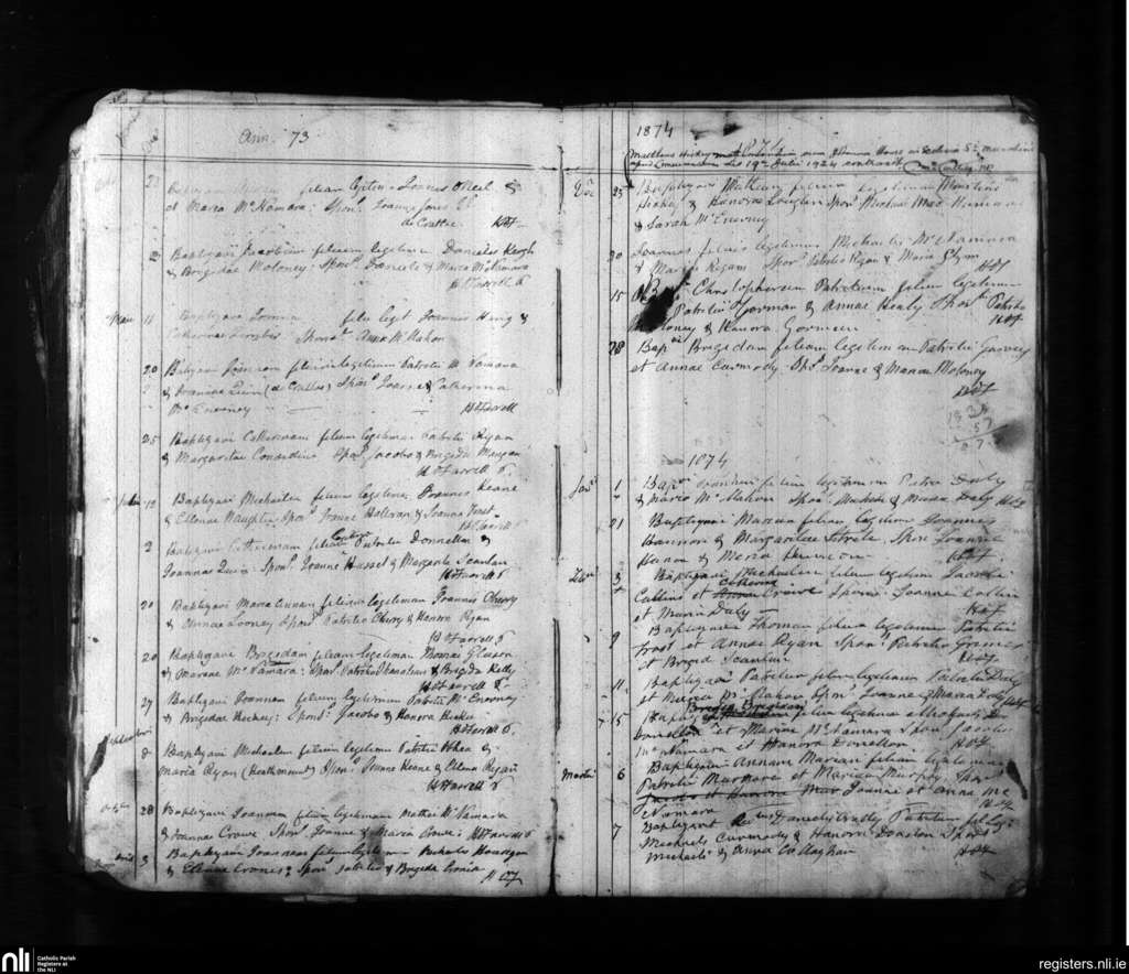 Cratloe; County of Clare; Diocese of Limerick. Baptisms, Apr. 1873 to Mar. 1874