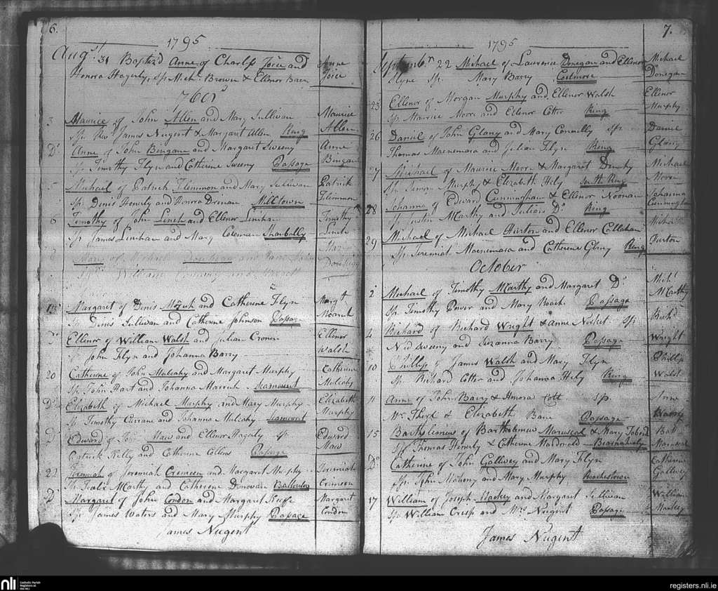 Passage West; County of Cork; Diocese of Cork and Ross. Baptisms, Aug. 1795 to Oct. 1795