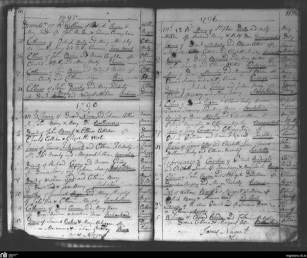 Passage West; County of Cork; Diocese of Cork and Ross. Baptisms, Dec. 1795 to Feb. 1796