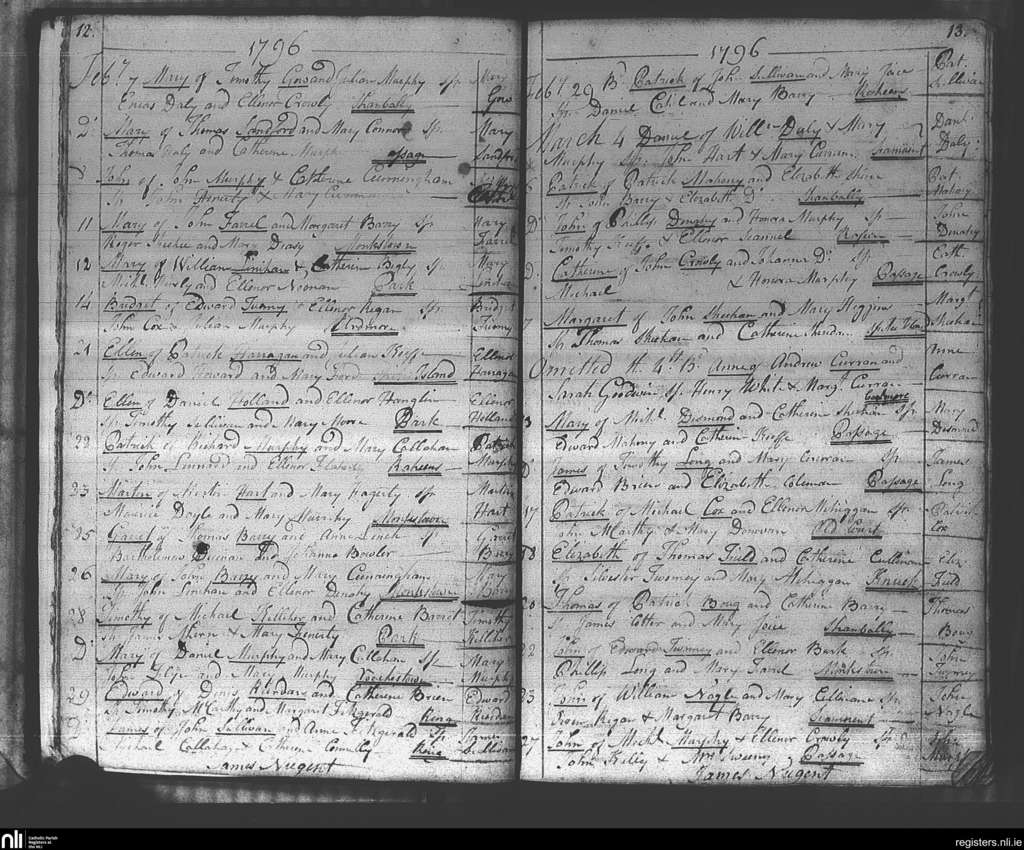 Passage West; County of Cork; Diocese of Cork and Ross. Baptisms, Feb. 1796 to Mar. 1796