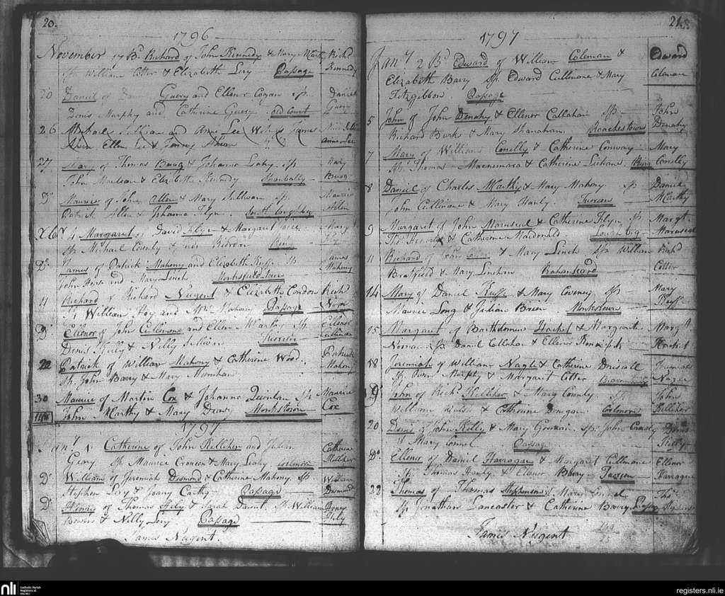 Passage West; County of Cork; Diocese of Cork and Ross. Baptisms, Nov. 1796 to Jan. 1797