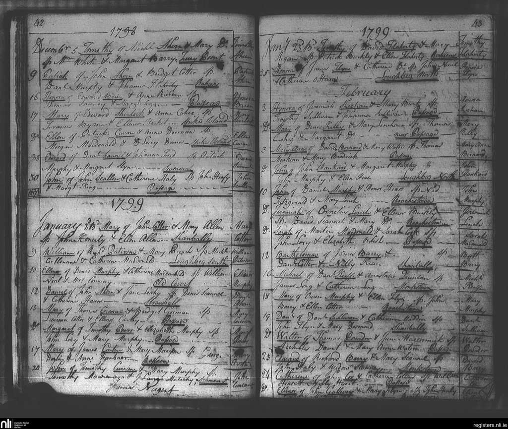 Passage West; County of Cork; Diocese of Cork and Ross. Baptisms, Dec. 1798 to Feb. 1799