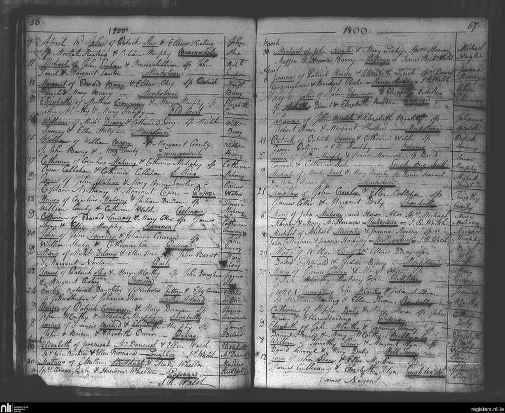 Passage West; County of Cork; Diocese of Cork and Ross. Baptisms, Mar. 1800 to June 1800