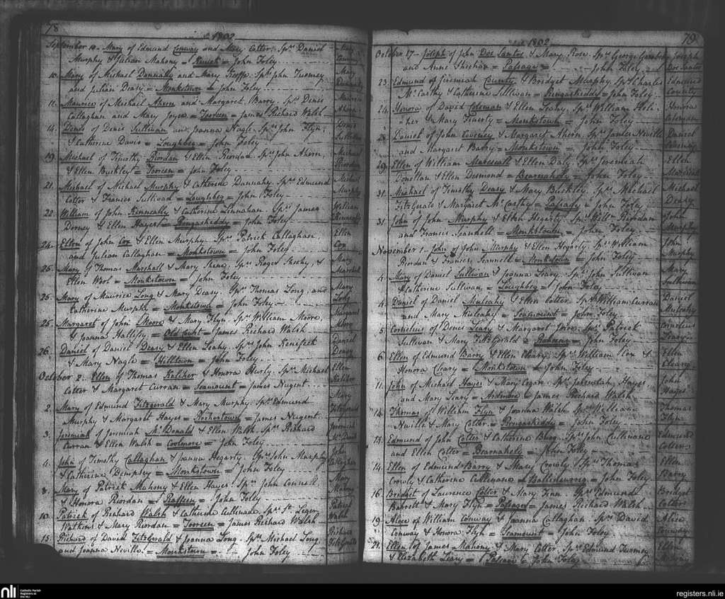 Passage West; County of Cork; Diocese of Cork and Ross. Baptisms, Sep. 1802 to Nov. 1802
