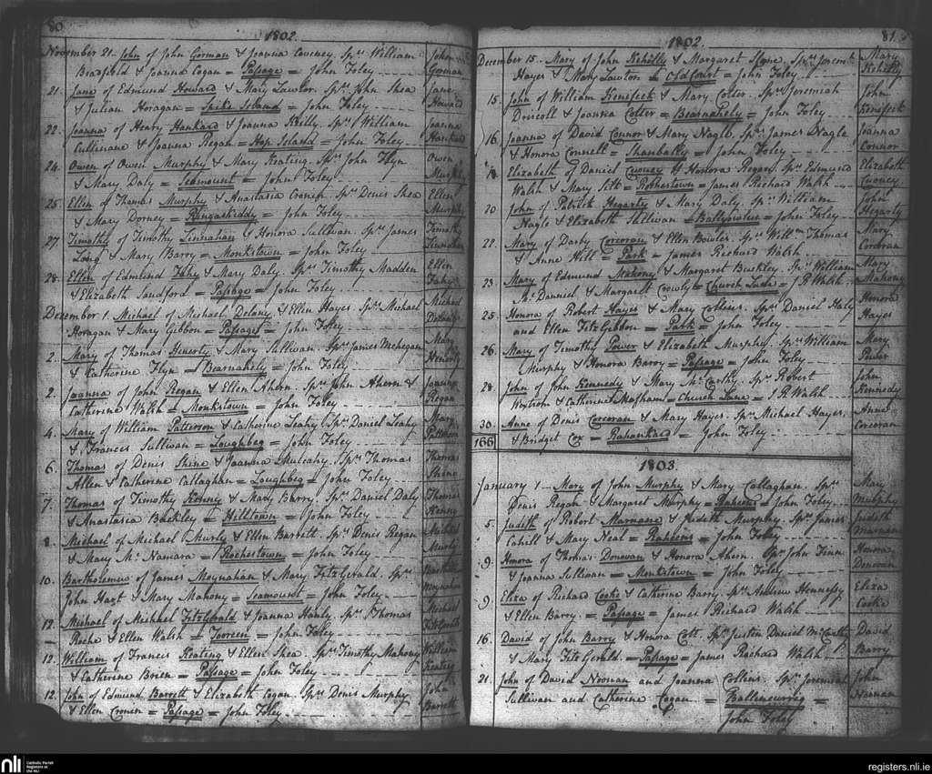 Passage West; County of Cork; Diocese of Cork and Ross. Baptisms, Nov. 1802 to Jan. 1803