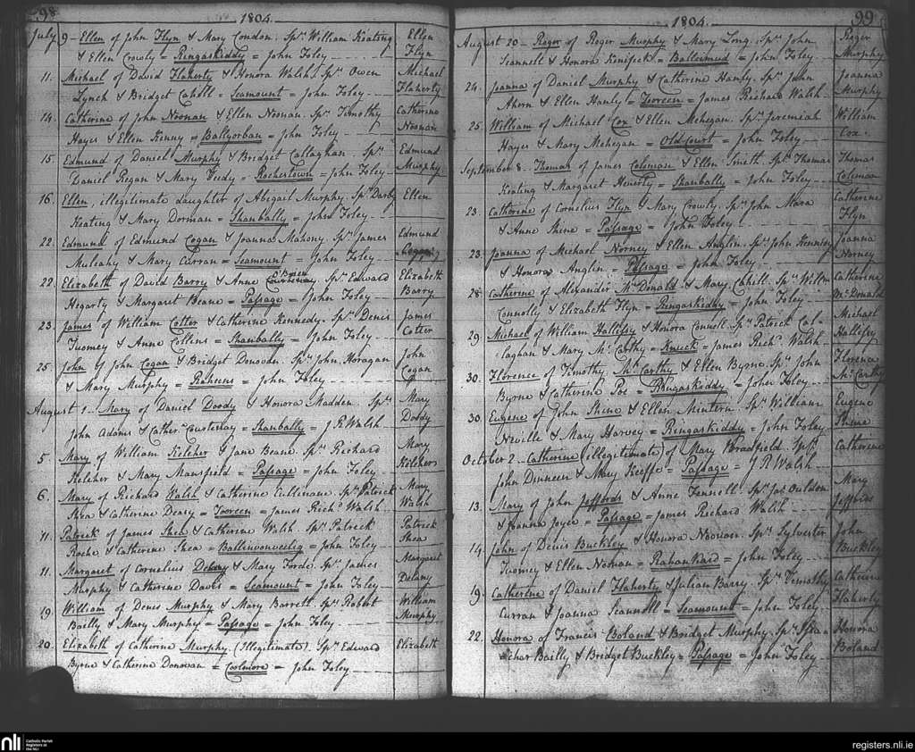 Passage West; County of Cork; Diocese of Cork and Ross. Baptisms, July 1804 to Oct. 1804