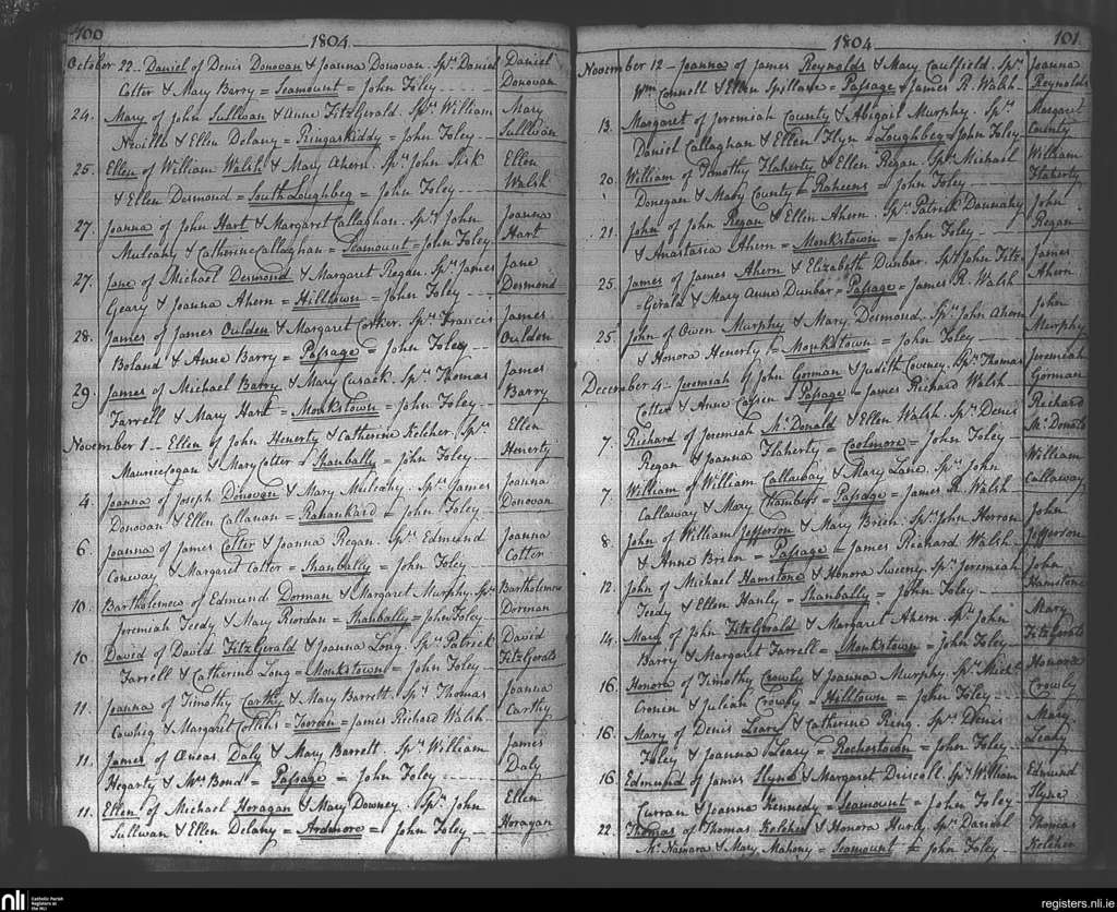 Passage West; County of Cork; Diocese of Cork and Ross. Baptisms, Oct. 1804 to Dec. 1804