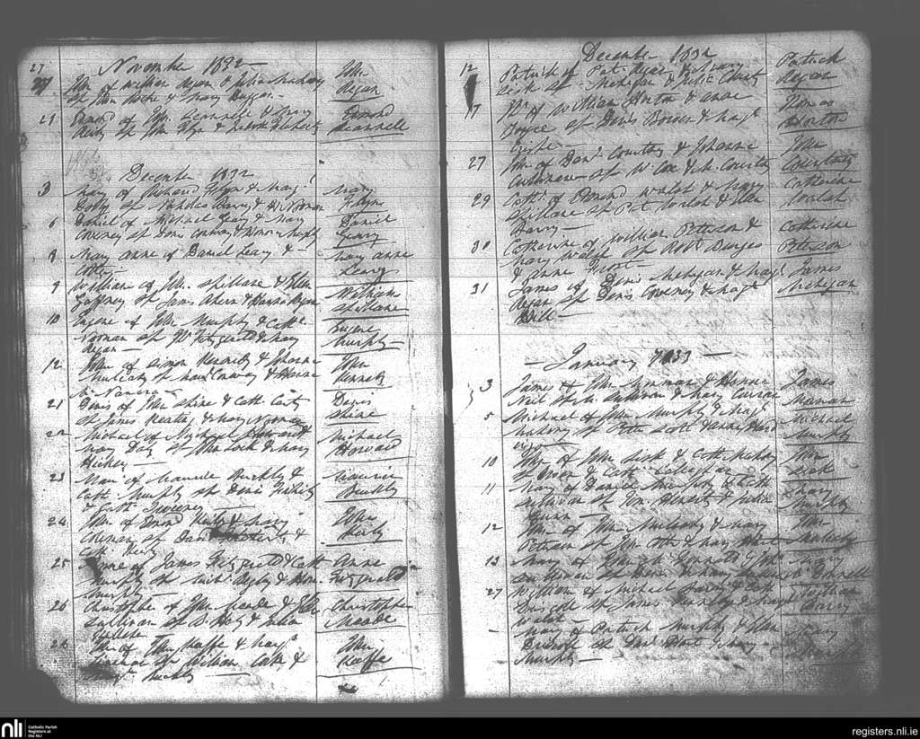 Passage West; County of Cork; Diocese of Cork and Ross. Baptisms, Nov. 1832 to Jan. 1833