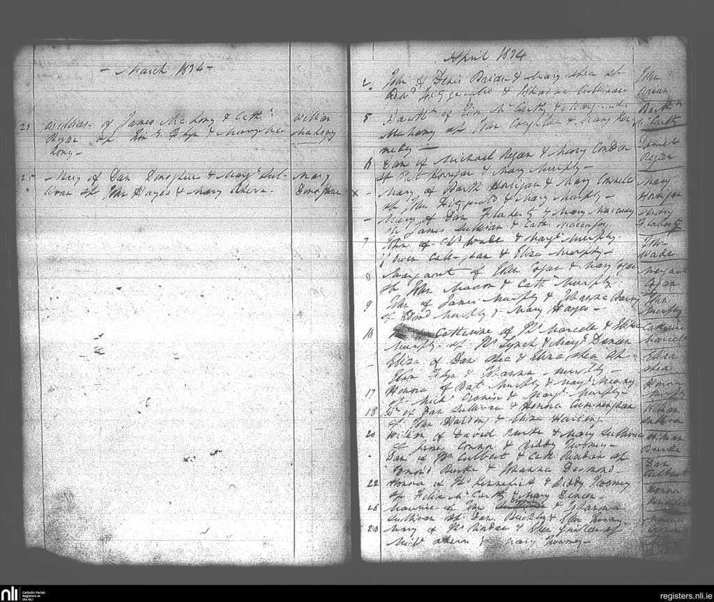 Passage West; County of Cork; Diocese of Cork and Ross. Baptisms, Mar. 1834 to Apr. 1834