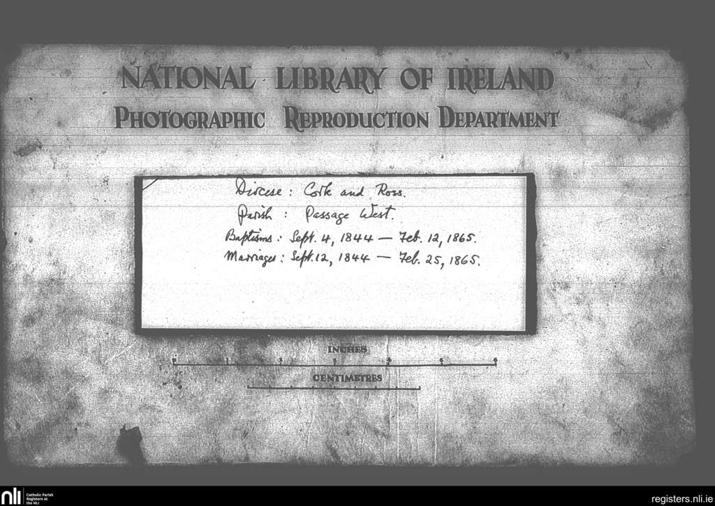 Passage West; County of Cork; Diocese of Cork and Ross. Baptisms, Marriages