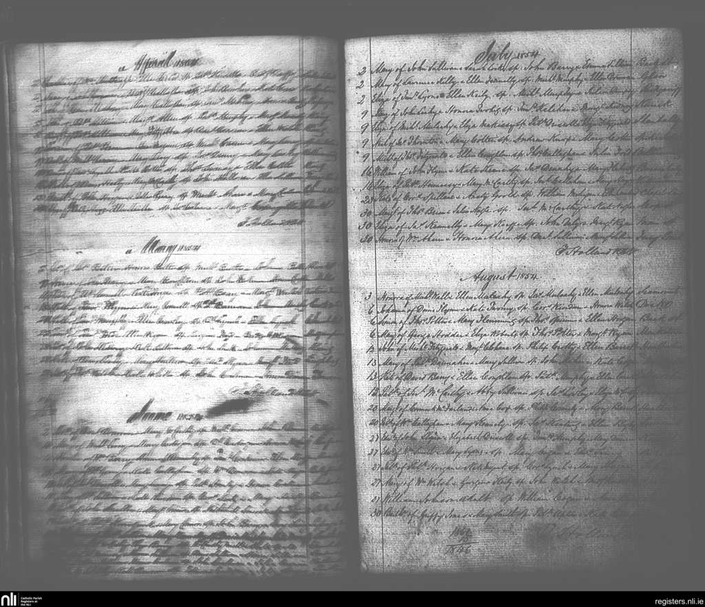 Passage West; County of Cork; Diocese of Cork and Ross. Baptisms, Apr. 1854 to Aug. 1854