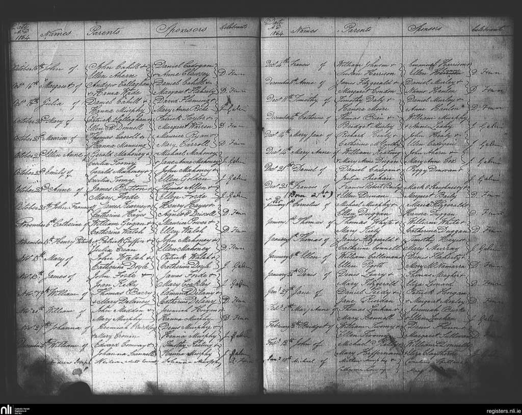 Passage West; County of Cork; Diocese of Cork and Ross. Baptisms, Oct. 1864 to Feb. 1865
