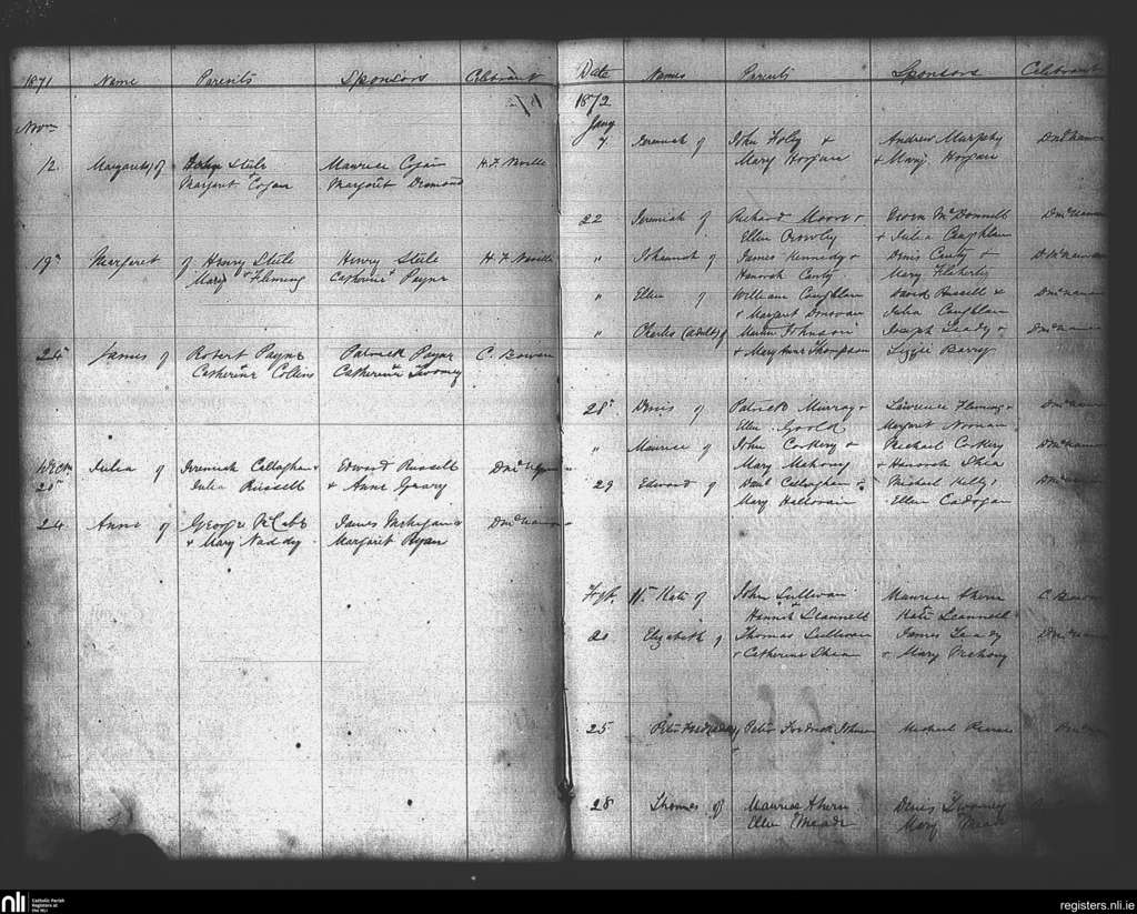 Passage West; County of Cork; Diocese of Cork and Ross. Baptisms, Nov. 1871 to Feb. 1872